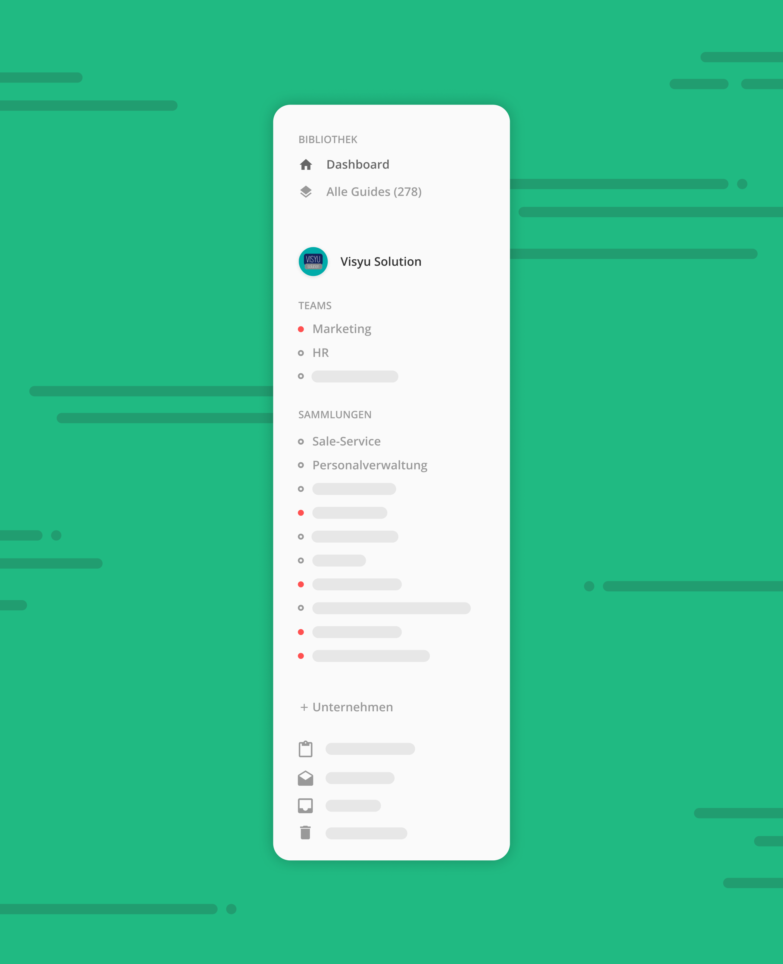 Organisiere und strukturiere ein oder mehrere Unternehmen. Füge Teams und Sammlungen hinzu, und erhalte einen besseren Blick auf deine Wissensstrukturen, so kannst du noch schneller und effizienter dein Wissen organisieren.