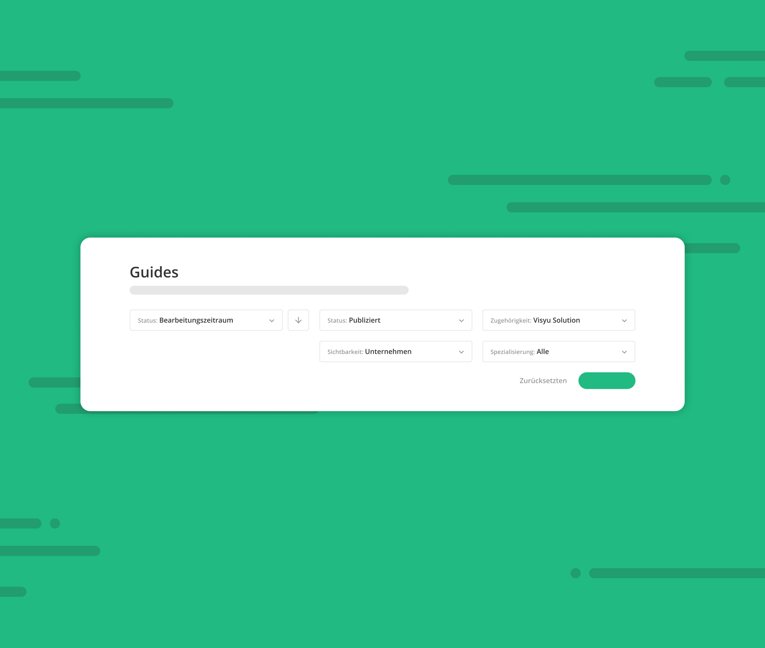 Finde schnell und einfach die Guides, auf die du Zugriff hast. Durch die intelligente Suche werden dir die entsprechenden Ergebnisse ganz oben angezeigt. Um deine Suchergebnisse weiter einzuschränken, helfen dir verschiedene Filter.