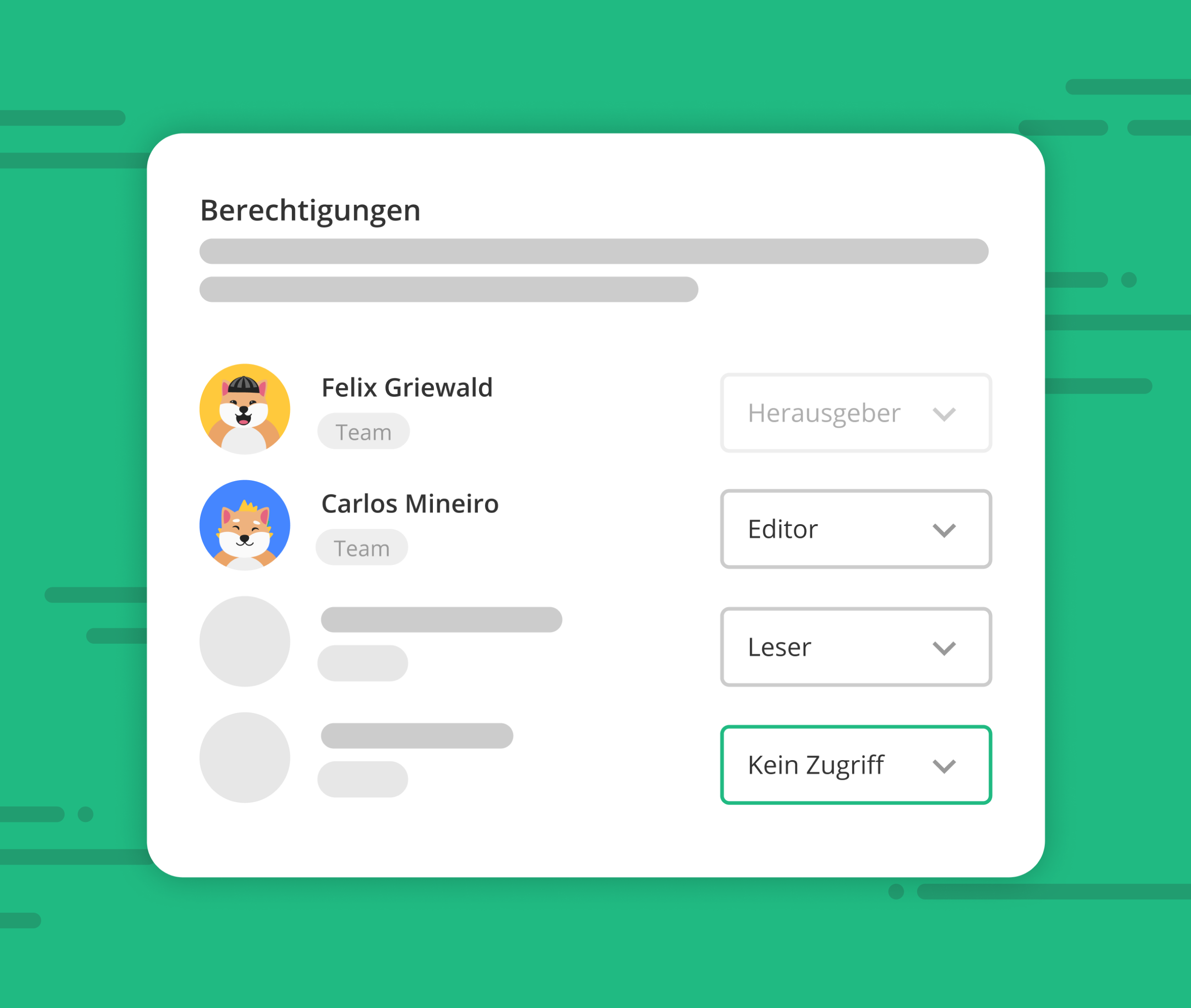 Entscheide über Zugriffsrechte und vergebe verschiedene Teamrollen.